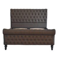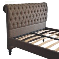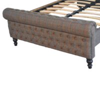 Experience the ultimate in elegance with our Multi Tweed Roll-top Bed. Crafted from 100% solid mango wood and upholstered in a multi tweed fabric, the headboard and footboard showcase exquisite curves with deep button design throughout. This masterpiece boasts a metallic frame with 18 wooden slats, ensuring durability and comfort. Nordic-style legs add a touch of sophistication. Transform your bedroom into a haven of style and tranquility. The box will contain 1 x headboard, 1 x footboard, 2 x side rails, 1 x metallic frame with 18 wooden slats (embedded in metallic frame), 4 x legs, 1 x hardware bag, total number of units in box = 9 units. Please note the bed does not include the mattress, duvet cover or pillows.