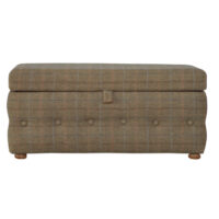 This is one of the handiest pieces of furniture you can have in a bedroom or living area. This storage box offers useful storage space for bedroom clutter such as bed sheets, duvets, pillows, linen and towels. This blanket box is fully upholstered in multi tweed and is constructed from 100% solid mango wood. Other features include four bun feet with a natural bleached finish. You may encounter variations from batch to batch hence if you are looking to pair products under similar room settings; you can opt for a bespoke order or take an informed decision about the possible variations.