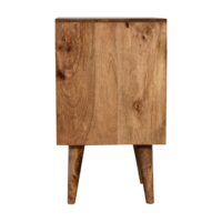 This Muna Bedside is stylish and useful, featuring a cabinet door made with a geometric pattern it provides shelves inside to store away any bits and bobs you wish to keep out of site. This bedside also comes with shiny brass knobs and nordic style legs. The perfect accompaniment for the bedroom.