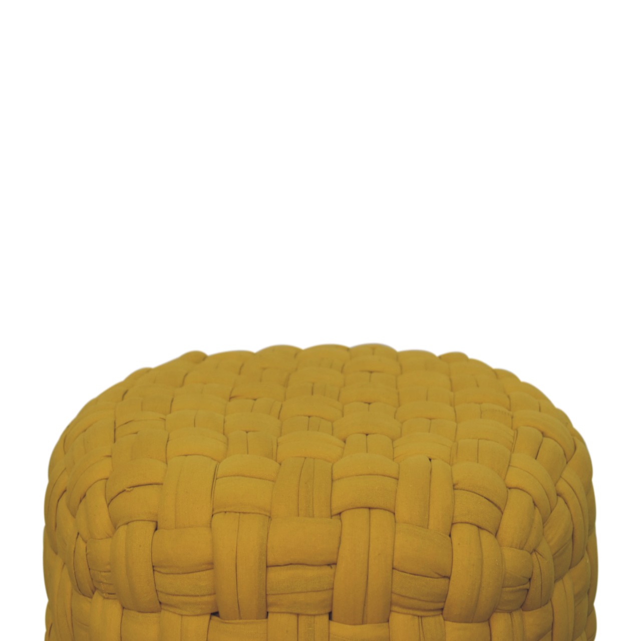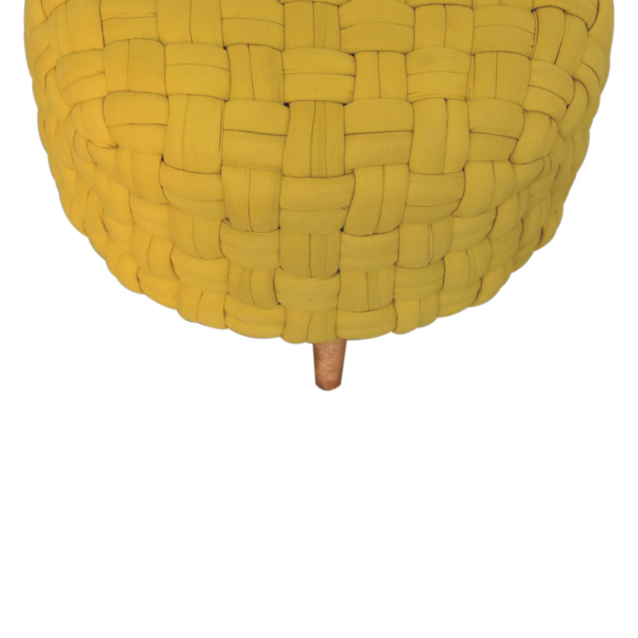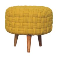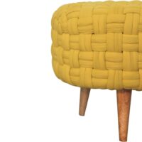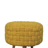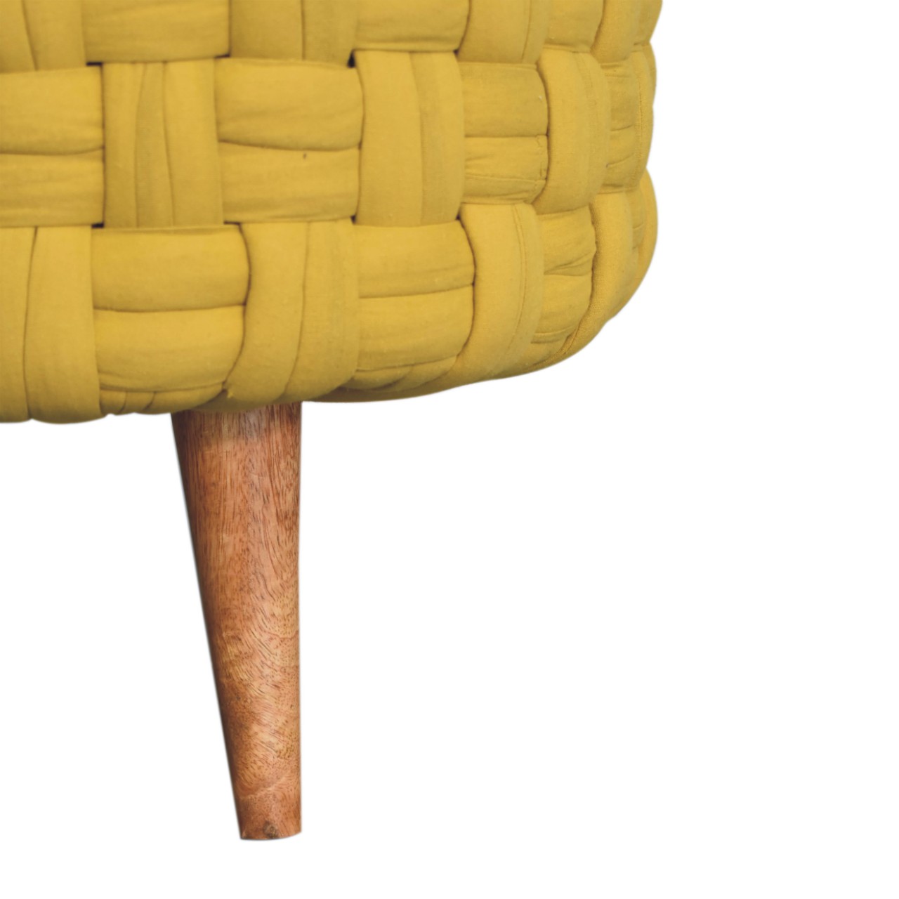 This small and versatile footstool will suit many interior design styles and room themes. With a cushioned mustard woven seat, supported by a wooden frame and sitting on top of four minimalistic nordic style wooden legs this sturdy footstool will sure come in handy for years to come.This product is handcrafted individually and as every piece is unique please do expect variations in finish, texture, size and should not be considered as a defect.