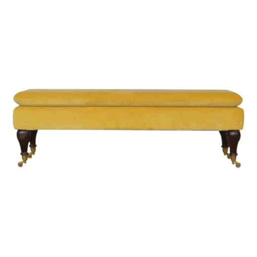 Mustard Velvet Castor Bench