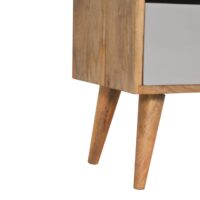 This mini handy bedside has been constructed from 100% solid wood. It features 1 navy hand painted solid wood drawer and 2 mini removable drawers hand painted in white and grey. The perfect addition for the bedroom as well as the living room.