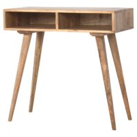 Inspired by modern design, this solid wood writing desk provides ample space for you to work on. It is constructed from 100% solid mango wood and has a fine oak-ish finish. Other features include 2 open shelves and a decent-sized tabletop. The perfect addition to any interior, with its clean design to suit most interiors.