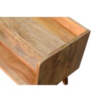 This shoe bench is beautifully hand crafted and constructed from 100% solid mango wood with Nordic style knock down legs in a rich oak-ish finish. This design will bring a whole new look to your home and offers useful storage for shoes, boots and any essential pieces to put on top.