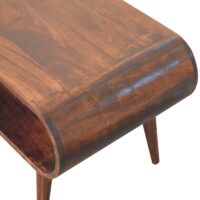 This simple open coffee table which is constructed from 100% solid mango wood in a california walnut finish and features nordic style legs and smooth round edges, which will give a modern feel to the home as well as be safe around small children and animals. Display this piece beautifully in your home and allow the natural grain pattern to really shine.