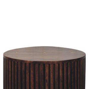 The Orion Slatted Coffee Table brings sculptural sophistication to your living space. Handcrafted from 100% solid mango wood, its bold circular form is defined by deep vertical fluting that adds depth and visual intrigue. Finished in a luxurious California Walnut tone, this piece exudes warmth and elegance—perfectly suited for modern and transitional interiors seeking a touch of artisanal charm.