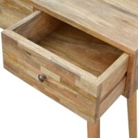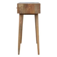 This simple and elegant console table has been made to suit most homes, it has been constructed from 100% solid mango wood unit and built with sustainably sourced timbers. It features three drawers to help you store any little household objects and keep your home organised. Other features include shiny knobs and a fine oak-ish finish.