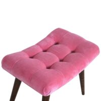 Our Nordic style benches will provide you with style and versatility. This stunning velvet bench has been upholstered in a pink cotton velvet fabric and stands on 4 Nordic style feet constructed from 100% solid mango wood in a walnut finish. This piece can be used in a hallway or as additional seating in your bedroom or living room to create a cozy environment.