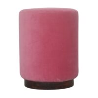 This beautiful and fashionable footstool is the perfect addition to any bedroom or living room. It is upholstered in a luxurious Pink cotton velvet fabric and features a walnut finish base. Perfect for putting your feet up, using as a handbag stand, or as an accent piece in the home.