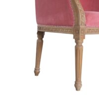 This classy occasionall chair has been upholstered in a pink velvet fabric. It features a studded design and legs constructed from 100% solid mango wood providing strength and durability. This simple yet classy piece can be incorporated in different home settings and interiors.