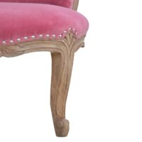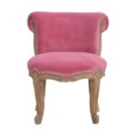 Add class and style to your home with this occasional chair. The upholstered pink cotton velvet fabric goes beautifully with the studded design giving the piece an overall unique and chic look. With solid wooden legs constructed from 100% solid mango wood in a sunbleach finish, the chair provides strength and durability and can be incorporated in different home settings and interiors.