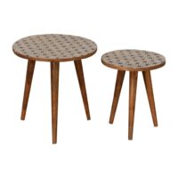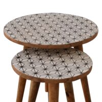 This set of 2 Nordic style round stools are made of 100% mango wood in an oak-ish finish and are perfect for seating for guests or for everyday use. The stools also work as side tables, providing excellent versatility with their compact size. They are perfect for use in small spaces and can be tucked away under one another partially.