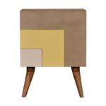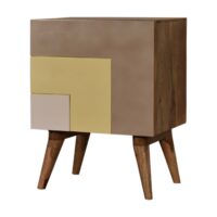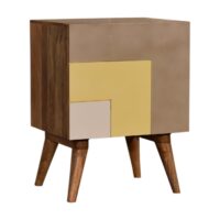 Offering a clean and sharp L pattern and hand painted in 3 rich shades of yellow this bedside offers plenty of room on top for a lamp, photo frame or books. Storage is offered with one door which can be used to easily store bits and pieces and keep them close and handy before bedtime. Other features include Nordic style legs and the body is constructed from 100% solid mango wood.