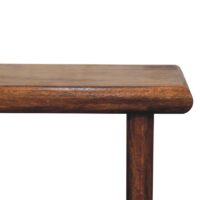 Discover the charm of our Rio Bench, crafted from 100% solid mango wood with a warm chestnut finish. Perfect for the living room or hallway to have a seat or take off or take on your shoes. Its compact design and timeless appeal make it a sophisticated addition to any home.