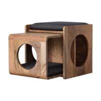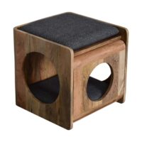This pet bed has been constructed from 100% solid mango wood in a oak-ish finish and has a comfortable padded seat indside upholstered from black tweed that we reckon your furry friend will love. It also has a seatpad on top which will come in use in the hallway or living room as a seat when convenient.
