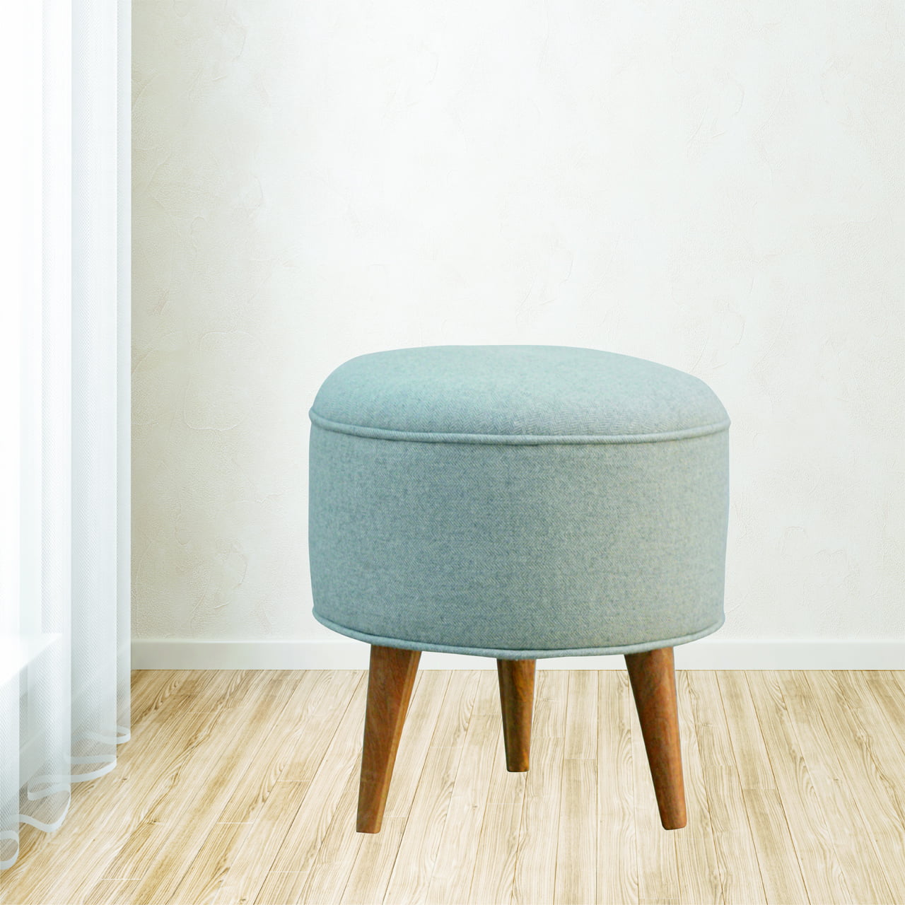 This round Nordic tweed style footstool is constructed from 100% solid mango wood and upholstered in woolen grey tweed. Other features include Scandinavian styled feet which have a beautiful fine oak-ish finish. It is the perfect accent piece to add to any room in the house.