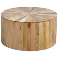 This round wooden table has been constructed from 100% solid mango wood in an oak-ish finish. It has smooth round edges meaning it is easy and safe to use in any part of the home. The simplicity of this table would match almost any type of décor and can be used with any style stool or chair.