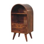 Hand crafted from 100% solid mango wood and featuring nordic style legs with shiny brass knobs, this sophisticated cabinet makes a stunning statement in any living space – and boasts an abundance of space for plants, books, and ornaments with 2 open shelves and 2 drawers.