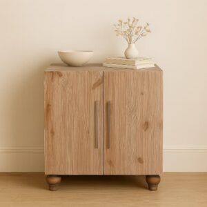 Discover the perfect harmony of materials in the Sandgrain Pine & Mango Sideboard. Crafted with a solid mango wood body in a weathered stonedrift finish and paired with pine wood doors in a reclaimed sand tone, this piece exudes rustic elegance. The natural grain of the pine doors adds warmth and depth, while sleek brass-toned handles offer a contemporary touch. Ideal for dining areas, entryways, or living spaces, this sideboard is both functional and refined—a timeless storage solution with artisanal soul.