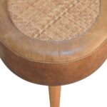 Featuring a seagrass centre base with a buffalo leather hide rim, this footstool is constructed from 100% solid mango wood with oak-ish finish legs, ensuring it is stable and durable in the home. It provides a beautiful contrast between both fabrics, and is multi functional meaning it can be used both in the living room and bedroom.