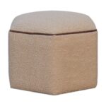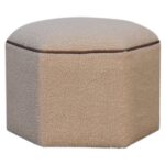 This beautiful and fashionable hexagonal footstool is the perfect addition to any bedroom or living room. It is upholstered in a luxurious cream boucle fabric and has buffalo leather piping around the rim for extra dimension and character, perfect for putting your feet up, using it as a handbag stand, or as an accent piece in the home.