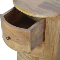 This curved drum chest is the perfect addition to the home, featuring 3 spacious drawers providing sufficient and conveninent storage space for any bits and pieces you wish to keep nearby before bedtime. Constructed from 100% solid mango wood in an oak-ish finish it is the perfect piece for the bedroom allowing it to be incorporated with different colours and styles of furniture.
