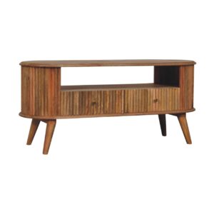 This beautiful Soba Nordic Media Unit has been constructed from 100% solid mango wood and has a lovely natural oak-ish finish. It features a 2 drawers perfect for storage, a large open slot as well as nordic style legs. Let this piece create the perfect contemporary look in your living room.