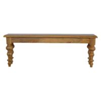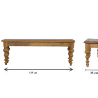 This bench is constructed from 100% solid mango wood and has a fine oak-ish finish, it features hand turned legs and a thick top and can be used as a dining table bench or a hallway bench, and will make the perfect addition to any home. Every piece of furniture is individually handcrafted and includes swing care tickets explaining the cautions and aftercare instructions.