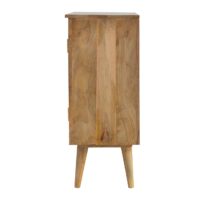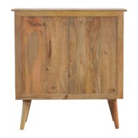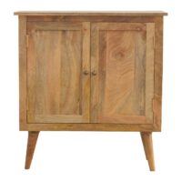 This 2 door handy cabinet has been constructed from 100% solid mango wood and has a fine oak-ish finish. Its design provides space with 2 large doors that offer useful storage and includes other features such as shiny knobs and 4 Scandinavian styled feet. The perfect addition to any home