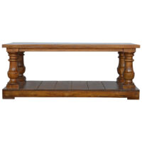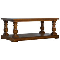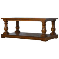This coffee table is the perfect addition to a living room, feauturing a rustic, country design and 4 turned legs for added detail. It has been constructed from 100% solid mango wood in an oak-ish finish and offers one shelf which can be used to disreetly store any belongings like books, magazines or paperwork. It’s design makes it a versatile piece which can be incoporated with other furniture products or stand individually