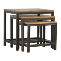 This set of 3 square shaped nesting tables are a beautiful and practical addition to add to your home. The perfect way to show off an industrial style design, the top of the tables are constructed from 100% solid mango wood and the base/legs are made from 100% metal iron. Other features include straight legs which have a pewter finish and the solid wood top has a fine smooth oak-ish finish.