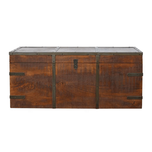 This storage box has been constructed from 100% solid mango wood in an oak-ish finish with an iron frame and iron work for durability and added effect. It features a latch on the front which gives it extra security and allows your belogings to be safely stored away. It is the perfect addition for a hallway/corridor or living room.
