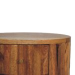This simple bedside offers a contemporary style with its distinctive stripe design. It has been constructed from 100% solid mango wood in an oak-ish finish and features 2 small drawers for convenience in the bedroom.