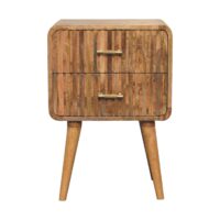 This beautiful T-bar Ridged Bedside has been constructed from 100% solid mango wood and has a lovely natural oak-ish finish. It has features such as t-bar handles for easy access to the drawers, as well as 4 Nordic style legs for stability and a modern touch. Make full use of this piece in your bedroom and let it be the perfect accompaniment to your bed.