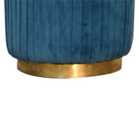 This beautiful and fashionable footstool will make the perfect addition to any bedroom or living room. It has been upholstered in a luxurious teal cotton velvet fabric with a pleated design featuring a gold brass base. Perfect for putting your feet up, using as a handbag stand, or as an accent piece in the home.