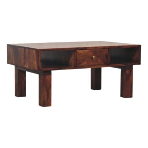 Discover the Tula Coffee Table, a beautifully crafted piece made from Sheesham wood with a warm chestnut finish. Simple yet elegant, this coffee table features brass knobs and straight legs, providing a timeless look for any living space. Its spacious surface is perfect for hosting your favorite beverages, books, and decorative items, blending functionality with style. Ideal for any room looking to add a touch of sophistication and practicality.