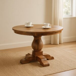 The Valentina Round Dining Table brings graceful curves and timeless elegance to your dining space. Handcrafted from solid wood, its sculpted pedestal base offers strength and character, while the round tabletop provides an inviting setting for meals, conversation, and connection. Perfect for intimate gatherings or everyday family dinners, this piece celebrates craftsmanship with a warm, natural charm that suits both classic and contemporary interiors.
