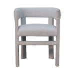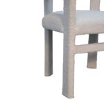 Upholstered in a snow white boucle this occasional sturdy chair would fit in beautifully in a bedroom or study room, it poses a simple yet elegant design meaning it will easily become your favourite piece in the home. Its neutral colour means it can be partnered and used with different styles and colours of furniture in the home.