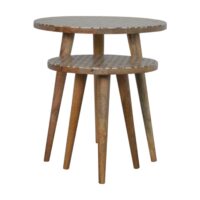 This set of 2 Nordic style round stools are made of 100% mango wood and are perfect for seating for guests or for everyday use. The stools also work as side tables, providing excellent versatility. With their compact size they are perfect for use in small spaces, and can be tucked away under one another partially.