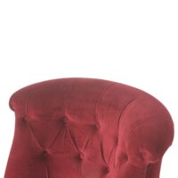 This petite accent chair is beautifully hand carved from 100% solid mango wood and upholstered in a beautiful wine red cotton velvet. Other features include deep button tufts, 2 caster legs at the front and 2 tapered legs at the back. All 4 legs have a fine oak-ish finish. Perfect to add some extra character and definition to the home.