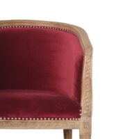This classy occasional chair has been upholstered in a wine red cotton velvet fabric. It features a studded design and legs constructed from 100% solid mango wood in N3 natural finish, strength and durability. This simple yet classy piece can be incorporated in different home settings and interiors.