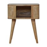 This stylish bedside features a woven design with a smooth oak-ish finish body and legs. Constructed from 100% solid mango legs it has an open slot for storage and 4 nordic style legs. Make full use of this bedside in the bedroom and partner it with the rest of the collection.