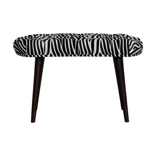This Nordic style bench has been upholstered in a beautiful zebra print cotton velvet fabric and features a classy deep-button design on the top. The bench stands on 4 legs constructed from 100% solid mango wood in a walnut finish and it is the perfect piece to add to your bedroom or hallway as a finishing touch in the home.