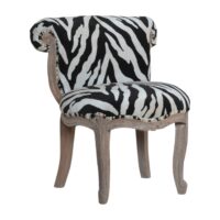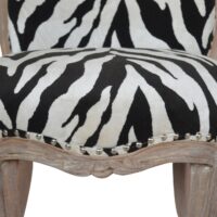 Add class and style to your home with this occasional chair. The upholstered zebra print fabric goes beautifully with the studded design giving the piece an overall unique and chic look. With solid wooden legs constructed from 100% solid mango wood the chair provides strength and durability and can be incorporated in different home settings and interiors.